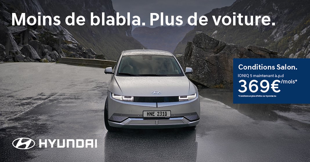 * Exemple pour un Hyundai IONIQ 5 neuf, hors options en Flexifin sur 60 mois / 50 000 km, 60 loyers de 369€ - TAEG (taux annuel effectif global) de 3,99 %, taux débiteur annuel fixe: 3,99 %. Avence 20% (optionnel). Offre soumise à conditions et réservée aux particuliers, valable du 01/01/2026 au 31/01/2026, dans la limite des stocks disponibles (voir conditions de l'offre en concession)