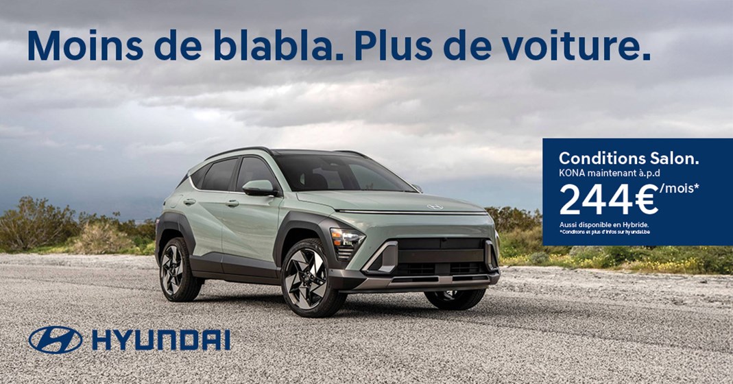 * Exemple pour un Hyundai KONA ICE neuf, hors options en Flexifin sur 60 mois / 50 000 km, 60 loyers de 244€ - TAEG (taux annuel effectif global) de 3,99 %, taux débiteur annuel fixe: 3,99 %. Avence 20% (optionnel). Offre soumise à conditions et réservée aux particuliers, valable du 01/01/2026 au 31/01/2026, dans la limite des stocks disponibles (voir conditions de l'offre en concession)