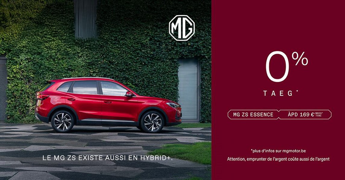 * Exemple pour un MG ZS neuf, hors options en Flexifin sur 60 mois / 50 000 km, 60 loyers de 159€ - TAEG 1,99% – versions ICE remise directe ou 1,99% TAEG - règlement sur Dealnet. Offre soumise à conditions et réservée aux particuliers, valable du 01/09/2025 au 31/10/2025, dans la limite des stocks disponibles (voir conditions de l'offre en concession)