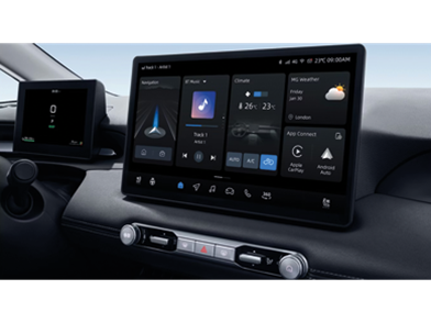 La MG4 EV Urban met également l'accent sur la connectivité en embarquant d'office Apple CarPlay™ et Android Auto™ sans fil. Des applications tierces (Spotify, Amazon Music, YouTube, TikTok) sont directement intégrées au système. Pour des questions de praticité au quotidien, le constructeur a fait le choix de conserver une rangée de boutons physiques en dessous de l'écran central pour l'accès aux commandes climatiques et audio.